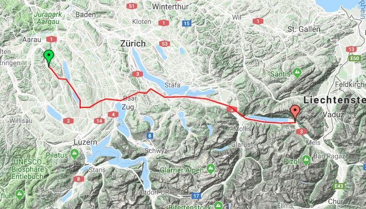 Richtung Ostscheiz Azmoos, wo unsere liebe Familie uns erwartet. Die Reise verläuft mega gut, das Wetter spielt mit und wir kommen gut voran. Sogar rund um München läufts reibungslos.