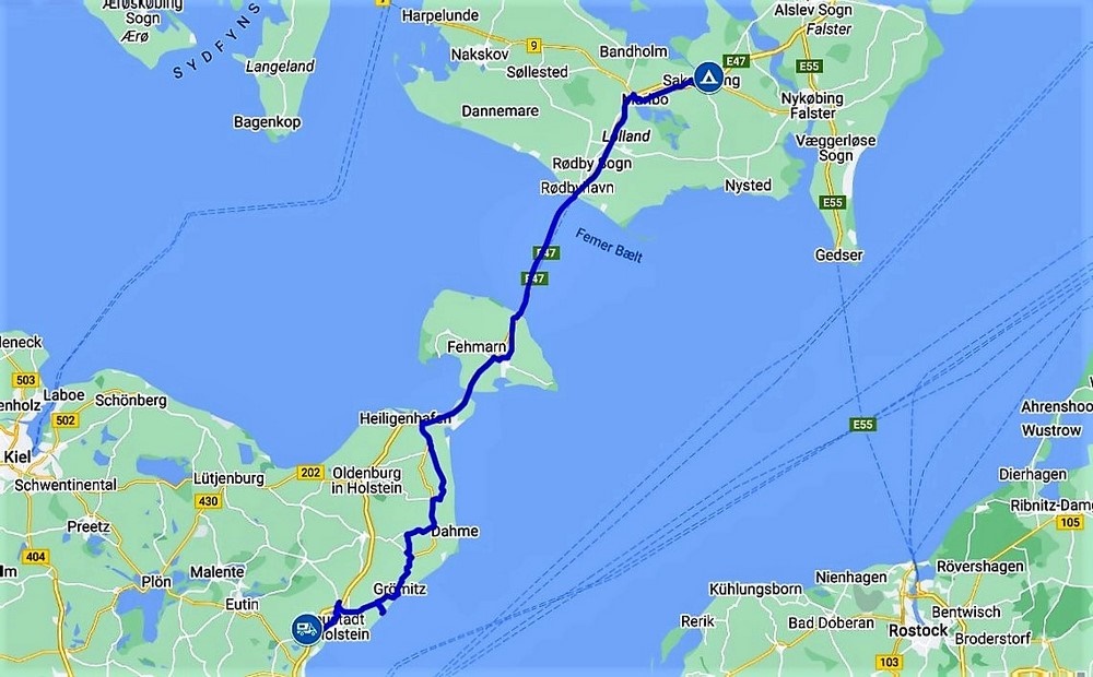 zu fahren, sind es doch noch einige Kilometer bis Dänemark. Für heute ergibt das dann knapp 450 km, Wir fahren im Schnitt so um die 110km/h also eher gemächlich - passt.