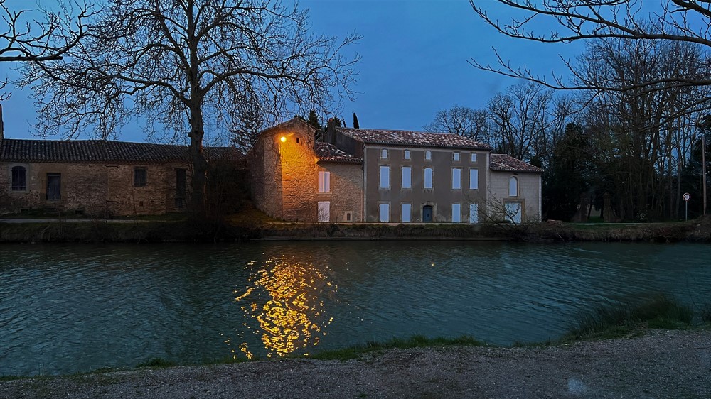 Und dann erleuchtet später am Abend eine romantische Lampe den Canal du Midi direkt vor unseren Augen. Romantik puuuur.