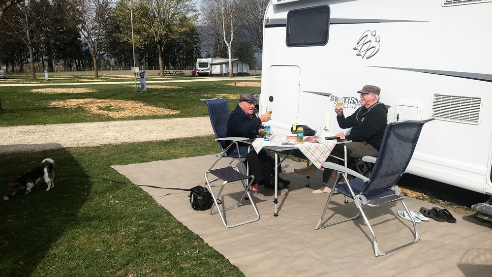 Also wir kommen bei strahlendem Wetter gut an uaf dem TCS Camping Solothurn. Ein nettes Plätzchen erwartet uns, Calimero neben Pixxelchen (ausnahmsweise Goodwill des Platzchefs) und so richten wir uns gleich ein und geniessen die warme Sonne und die Camperidylle mit einem ersten Aperööli mit Goodelis gespendet usem Füfi - Danke vielmals.